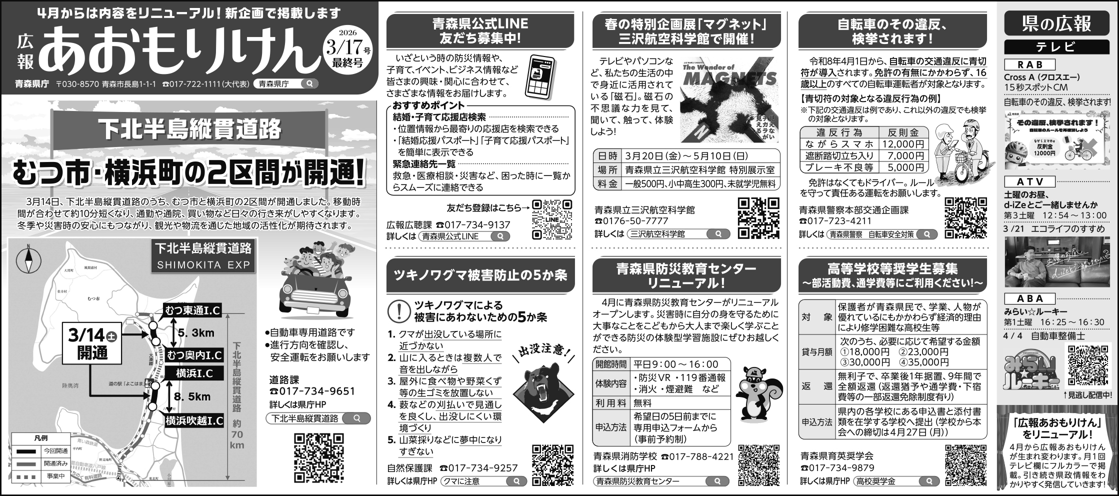 新聞広報「広報あおもりけん」3月17日号を掲載しました