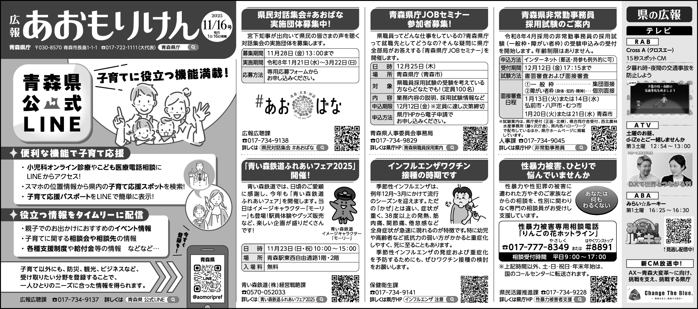 新聞広報「広報あおもりけん」11月16日号を掲載しました