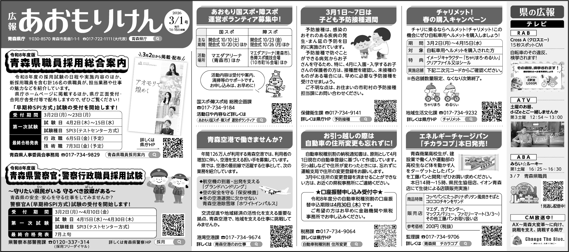新聞広報「広報あおもりけん」3月1日号を掲載しました