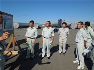 二又風力開発(株)では、風力発電の特徴と施設管理について説明を受け、意見交換を行いました。(写真3)