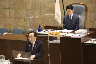 知事から「令和4年度青森県一般会計補正予算(第1号)案」をはじめ12件の議案が提出され、提案理由の説明が行われました。