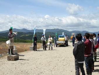 田子町の中澤住民課長(兼)産廃不法投棄対策室長から挨拶- 八戸市森林組合による植樹指導です