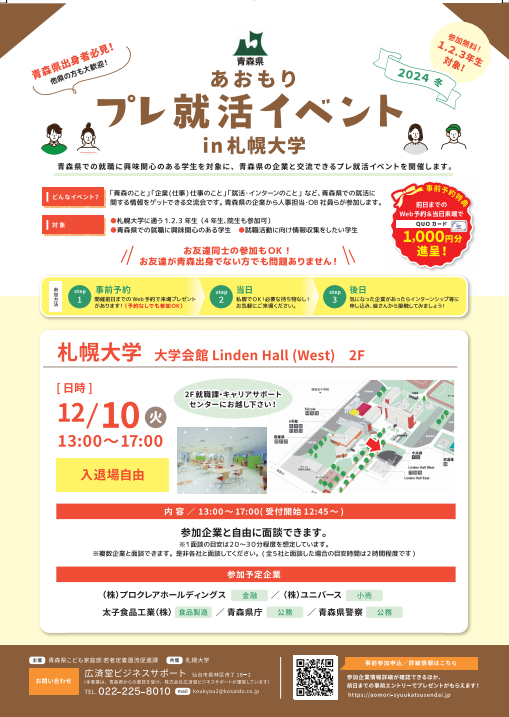 (1)札幌大学:令和6年12月10日(火)13時~17時 札幌大学大学会館LindenHall(West)2F