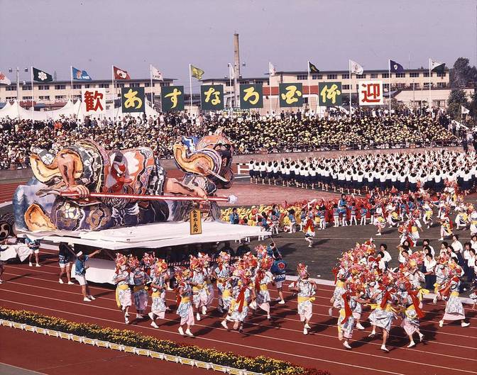 写真は、昭和52年10月、あすなろ国体秋季大会の開会式の様子です(青森県史編さん資料)。