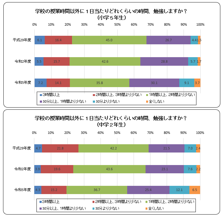 普段(月曜日から金曜日)、学校の授業時間以外、1日当たりどれくらいの時間、勉強しますか。